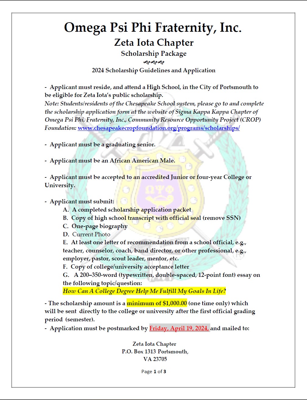 The Brothers of the Zeta Iota Chapter thank you for visiting our Website. Zeta Iota is a Graduate Chapter of Omega Psi Phi Fraternity, Inc. located in Portsmouth, Virginia. We hope that you enjoy your time here with us. We look forward to continuing our tradition of serving the community and encouraging brotherhood. Zeta Iota strives to play a significant position within the community through our many social and civic programs, we seek to enhance the lives of all through the utilization of our Cardinal Principals of MANHOOD, SCHOLARSHIP, PERSEVERANCE AND UPLIFT.